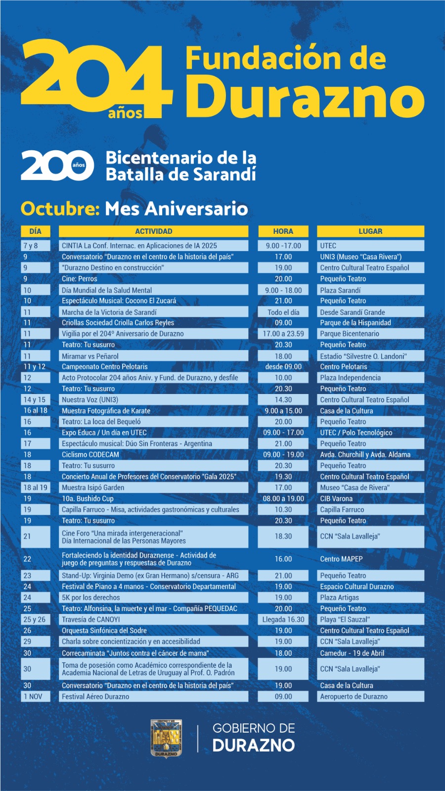 Festejos por los 204 años de Durazno en el Parque del Bicentenario 9/Oct/2025 | Uncategorized Descargar